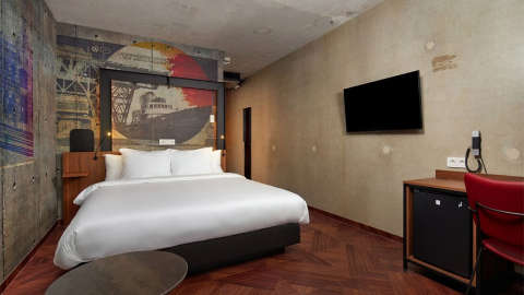 The hotel’s cool, industrial vibe is reflected in the room decor, which features historic images transformed into modern prints, exposed pipework and bespoke interiors. Room amenities include free Wi-Fi, air conditioning, a flat-screen TV, a laptop safe and tea and coffee making facilities. The en-suite bathroom features a walk-in shower and hairdryer. Each room offers great views over the water, railway and skyline of Amsterdam.