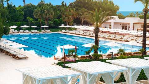 There’s no shortage of ways to spend your days here. You can unwind on the 350-metre sandy beach that sprawls gently into the clear Mediterranean. Rows of comfortable sun loungers and shaded private cabanas offer a quiet hideaway, where you can order a drink with a quick QR scan. If you're more of a pool person, the resort delivers in style. The shimmering main pool is surrounded by palms, while the Olympic and half-Olympic pools invite serious swimmers. The half-Olympic pool is heated in the winter season. An indoor pool awaits in the spa and is also heated in winter, while the aquapark – with twisting slides for both kids and grown-ups – is a lively option. Soft towels are always at hand for stretching out under the sun.