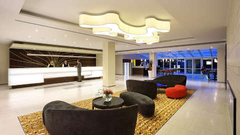 As you enter the hotel, the large white lobby area is brightened with an illuminated front desk, and pops of mocha, ochre and red, which continue throughout further common areas. Superior Rooms are simple but practical, with dark wooden furniture and neutral tones. Executive Rooms are the same size, but have brighter décor, with red and orange tones, and also grant a minibar on arrival, a Nespresso machine and late check-in and early check-out (subject to availability). Junior Suites are more spacious, with a seating area. Each bathroom is outfitted with bathtub/shower combination or a shower.