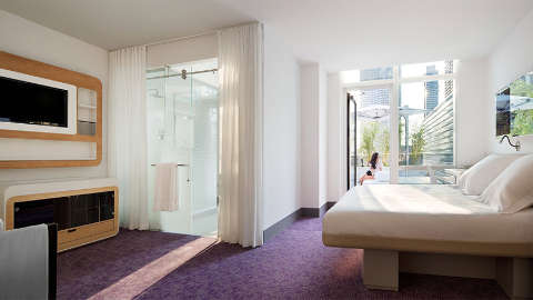 This retro-futuristic, design-led hotel is located in a quiet neighbourhood on the edge of Midtown West, less than a mile from Times Square. Macy’s and Madison Square Garden are approximately a mile away. Within five blocks and easily walkable you'll find Hell’s Kitchen and one of New York's newest neighbourhoods, Hudson Yards - which is a great place to access The High Line. The nearest subway is Times Square, so you’re perfectly positioned to explore New York further. Both Newark and JFK International Airports are within 16 miles from the hotel.
