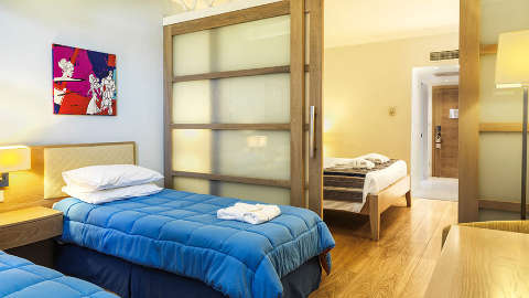 The Olympic Lagoon Resort Paphos is home to a range of rooms all complete with either a private terrace or balcony – bliss. Bathrooms comes kitted out with top-of-the-line sound systems and you'll find plush slippers and bathrobes waiting in your room – as well as pool towels. Views can vary, with an inland, pool and sparkling sea or side sea views on offer. If you've got little ones in tow, upgrade for a more spacious stay. The Family Junior Suite fits up to five and has sliding doors for a little privacy and peace.