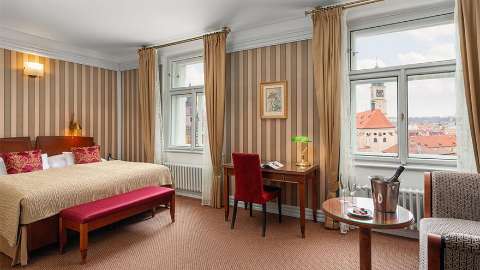 This stunning sandstone-coloured, spire-topped hotel was built in 1904 by the well-known architect Jan Vejrych. In 1984 it was officially declared one of the city's historical monuments. In 1991, the Czech government returned ownership of the hotel to the family of the original hotelier, the Brandejs Family. Today it is owned by his great-grandson.