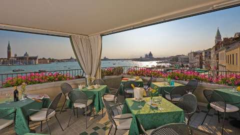 On the rooftop, the cosy hotel restaurant offers beautiful 180-degree views of the city, from the gardens of Sant’Elena all the way to Palazzo Ducale. A generous a la carte breakfast served here offers all the continental classics to start your day right. Think cappuccinos, juices, breads, jams, yoghurts and fresh fruit salads. If you're wanting something a little heartier, order the full breakfast for blend of savoury and sweet, with eggs, meats and cheeses also on the menu. Dine out on the sweeping terrace year round, with views stretching out over the iconic St. Mark's Square. You can also linger on the terrace for a tipple or two. Order a glass of local red or a classic cocktail and settle in, peacefully elevated above the beautiful bustle of Venice.
