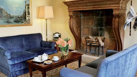 You won’t find a restaurant here, but Sina Palazzo Sant'Angelo still offers spots to sip, savour and unwind. Mornings begin with a buffet breakfast in a sweet Venetian-inspired room, styled in rich fabrics and panelling. In the warmer months, you can take your plate and perch on elegant iron chairs in the garden, surrounded by potted greenery. Later in the day, stop by the inviting American Bar for cocktails or afternoon tea with views of the Grand Canal – sink into plush sofas here and watch the gondolas glide by.