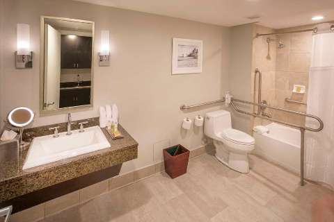 Daily Resort Charge includes: Guest internet access; two beach chairs, umbrella, and towels; 1-hour bicycle usage daily; two bottles of water daily; 10% off watersports; 15% off Made Market.Daily Resort Charge includes: Guest internet access; two beach chairs, umbrella, and towels; 1-hour bicycle usage daily; two bottles of water daily; 10% off watersports; 15% off Made Market. Indulge in luxury along the Intracoastal Waterway in contemporary South Florida style, and enjoy a relaxing vacation at the DoubleTree Resort by Hilton Hollywood Beach. Set along the Intracoastal Waterway, the resort is just steps from ocean waves and white-sand beaches. Hop on the Hollywood Trolley to tour Ocean Drive, or set off on the Fort Lauderdale Water Taxi. Our location between Fort Lauderdale and Miami makes it easy to reach major international airports and cruise terminals. Grab a warm DoubleTree Chocolate Chip Cookie at check-in and settle in for a tropical stay. Every spacious guestroom has complimentary WiFi and a flat screen HDTV, lighted vanity area, workstation with ergonomic chair, mini-fridge, and microwave. Sip your morning coffee while enjoying the water view from the furnished balcony. Our lobby offers Made Market featuring coffee, snacks, and other light fare. Port South Bar & Grill, our full-service restaurant, serves steaks, seafood, and regional dishes. The Lava Tiki Bar is adjacent to our infinity edge pool along the Intracoastal Waterway. Lava Tiki Bar offers casual fare for lunch and dinner and is a great spot to meet for drinks and cool off by our outdoor infinity pool. Along with a 24-hour business center, we have 9,493 sq. ft. of meeting space including a stylish boardroom and outdoor pavilion for up to 250 guests. Our friendly staff can help plan your waterfront reception or conference.