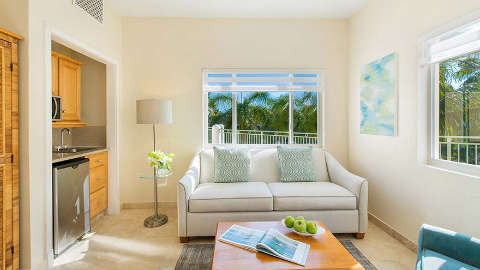 The spacious suites spread across six-acres, housed within six separate three-storey buildings. Most suites feature large floor-to-ceiling sliding doors and private balconies or terraces, so you can admire views of the tropical gardens or Atlantic Ocean (Junior Suite Courtyards have windows overlooking the main courtyard). Junior Suites are ideal for couples or solo travellers as they feature one king or queen-size bed, an en-suite bathroom, an open-plan sitting area and a small kitchenette with a microwave, refrigerator and sink. One- and Two-Bedroom Suites are more suitable for larger groups or families, since they offer a full kitchen and separate bedroom and living areas.
