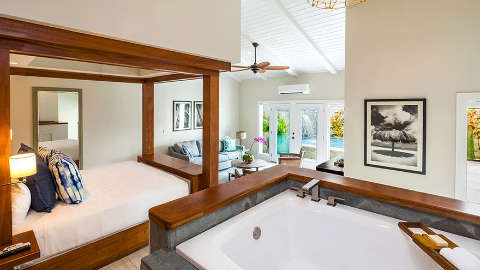 You can also opt for in-suite dining - choose from a special menu anytime for that special craving. Your meal can be delivered to your private Service Box if you don't wish to be disturbed. 24-Hour room service is also available, so you can enjoy breakfast on the deck, local cocoa tea, romantic dinners or more, all arranged by your butler to tailor it to your needs and desires.