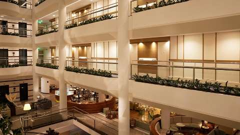 Sunny days start at Aquaria restaurant, with a buffet breakfast in or outdoors, overlooking the pool. You can grab a buffet lunch here too – or near the beach at Nautica Bistro (summer season only), where a la carte salads, pastas, fish and local meze are served. While you’re relaxing around the pool, snacks and drinks can be found at the Lagoon Pool Bar, or head inside to the Clouds Lounge Bar for light bites, pastries, sandwiches and cocktails underneath the semi-suspended ceiling to which the bar owes its name. Plus you can enjoy tasty Japanese fare at Shumi Pan-Asian plating up sushi, maki, salmon and more.