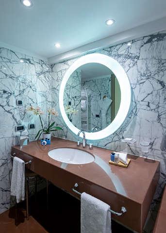 Guest rooms and suites are furnished in creams and whites, punctuated with bright pops of colour. All accommodation features a luxe bathroom Jacuzzi and stunning views of Port Hercule and the track, offering thrilling sights of the F1 cars racing past. Stay in a Corner Suite with a separate bedroom and plush sitting area for some of the best views which come at a premium during the Grand Prix season.