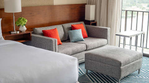 This large resort sits within an 18-storey tower. Within the building, a towering lobby decorated with indoor planting and calm seating areas, opens up to the glass ceiling. Transparent lifts whisk you up to your room, which will feature either a king-size bed or one queen and one double. The décor is mostly neutral with carpeted floors and modern furnishings. Comfy Hyatt Grand beds and huge 65-inch TV’s bring opulence, while balconies provide views over the grounds, lake or pool. Each room is spacious, making them ideal for families, with cots (additional charge applies), sofa beds and a mini-fridge.