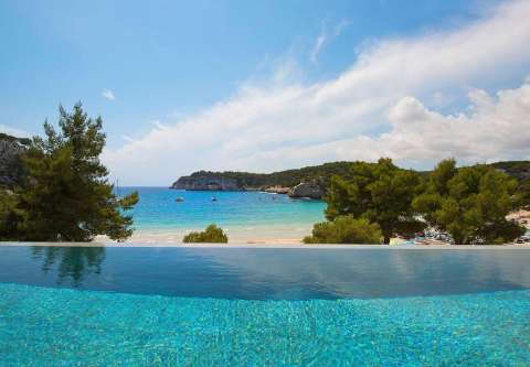 Location: This hotel overlooks the fine sandy beach and is situated amidst pine trees and truly magnificent gardens. The centre with its many shops, restaurants, lively bars and nightclubs is just 5 minutes' walk away. Links to the public transport network are to be found in the immediate vicinity. Mahón Airport is about 40 km from the hotel. Facilities: The friendly staff at the reception desk are happy to answer any questions. Amenities include a baggage storage service and a safe. Wireless internet access is provided in public areas. The tour desk offers assistance with booking excursions. The hotel has a range of facilities for guests with disabilities. The hotel has wheelchair-accessible facilities and a lift. The grounds of the hotel feature a playground and a lovely garden. Additional facilities include a library. Guests arriving by car can park their vehicles in the car park. Further services and facilities include a car hire service, medical assistance, 24-hour room service, a laundry service, a page service and a hotel doctor. Rooms: Air conditioning, adjustable central heating and a fan ensure that rooms maintain comfortable temperatures. Most units have a sea view. Children's beds can be requested for younger guests. A safe, a minibar and a desk are also available. Guests will also find a tea/coffee station included among the standard features. An ironing set is provided for guests' convenience. A telephone, a TV, a games console and WiFi are provided as well. A turndown service provides guests with additional comfort in the evening hours. A selection of pillows ensures a comfortable stay. Bathrooms are equipped with a shower, a whirlpool bath and a baby bath. A hairdryer and bathrobes are provided. For extra comfort in the bathrooms, guests are offered cosmetic products. The hotel has non-smoking rooms. Sports/Entertainment: While the adults swim a few laps in the outdoor pool, children can enjoy splashing about in their own swimming area. Guests can treat themselves to refreshing drinks at the poolside snack bar and a relaxing soak in the hot tub. Parasols on the terrace are also available. There are many ways to relax or stay active at the hotel, including aquafit, a gym, yoga and massage treatments. The hotel offers indoor sporting activities in the form of pilates. Guests of all ages have the opportunity to enjoy a fun entertainment programme. Meals: The dining area includes a restaurant and a bar. Half board can be booked. It is also possible to order breakfast. Vegetarian dishes, children's meals, organic food and vegan food can be prepared on request.