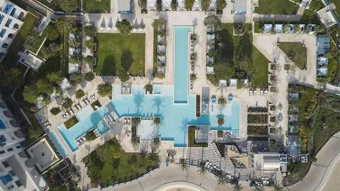 This family-friendly beach resort offers complimentary access to the on-site Desert Falls Water & Adventure Park, the largest water park in Qatar. It features 56 water slides, rides, surfing dunes, lazy rivers, go-karting tracks and more. Outdoor enthusiasts can also explore nearby cliffs and canyons, while sun worshippers flop down on the beach to relax. Qatar’s capital, Doha, is around 55 miles away, as are the popular Aspire Park and Villaggio Mall. Khalifa International Stadium is around 65 miles away, while Hamad International Airport is 75 miles from the resort.