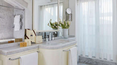 The hotel is filled with fresh flowers and tapestries. Each room is individually dressed in classic villa style with antiques, mirrored panels and a marble bathroom – though the traditional rooms are equipped with Wi-Fi. Bathrobes and slippers are provided here for your comfort.