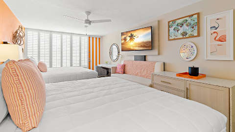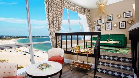 Rooms are decorated in coastal shades, with private furnished balconies offering stunning views of Tampa Bay and the city skyline, or partial views of the ocean and beach. Accommodation provides king-size beds, coffee machines, flat screen TVs and Wi-Fi.