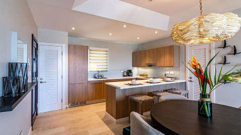 The accommodation options include a choice of stylish one- and two-bedroom suites, in addition to luxurious three-bedroom villas. All rooms are decorated in a contemporary style, inspired by the hotel’s natural surroundings, and you’ll find a kitchen, living room and private terrace (or balcony) overlooking the gardens or Atlantic Ocean. Situated on a hillside, the Three Bedroom Villas afford the utmost space and privacy. They occupy three storeys and feature breathtaking ocean views, a modern kitchen, a spacious living room, sleek bathrooms and an expansive patio area with an al fresco dining space, an outdoor grilling station and a private infinity pool.