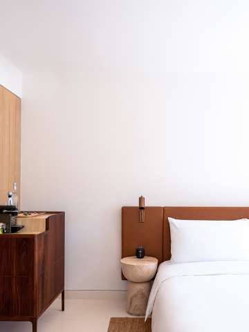 From poets to pirates and disco duchesses in glamorous exile The Standard is the newest in a long line of bold characters to make its mark on Ibiza. 53 rooms and suites occupy the streamlined white hotel a pebbles throw from the marina presenting a clean and calming canvas for afternoon liaisons and lazy mornings in bed. Down the block Casa Privada serves the pleasures of a stylish private residence with 14 private rooms to divide amongst your crew. Japanese-Mexican cuisine at Up offers one of Ibizas only rooftop pools and sweeping views of the Castle exploring pleasure principles into the wee hours. Charming street level restaurant Jara throws opens its doors to the buzzing street scene while guests enjoy farm-to-table cuisine and fresh cocktails cafe style. In the evening Jara is a social and culinary destination upping the ante within intimate banquettes and closed curtains creating an atmosphere where anything goes.