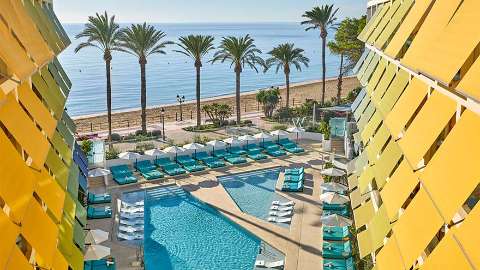 With its unique palm-fringed beachfront, the hotel is set in the relaxed pace and cosmopolitan vibe of Santa Eulalia del Rio, which offers a mix of local art galleries, trendy boutiques, amazing dining options and other hotspots, all walking distance from the hotel. Puig de Missa and the Museu Etnogràfic are both under a mile away. The hotel has direct access to the beach and is less than a mile from the marina. Ibiza Airport is 13 miles away.