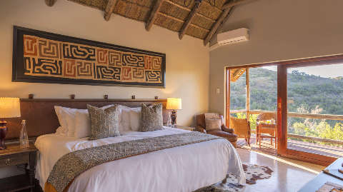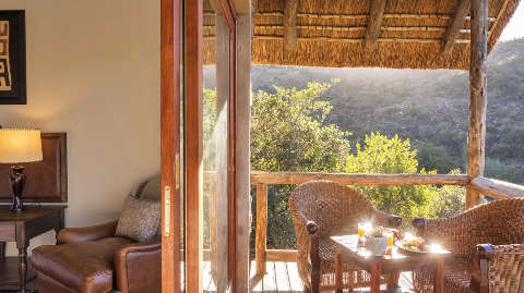 Lentaba Safari Lodge is in the Lalibela Game Reserve in the malaria-free Eastern Cape. It is known as the lodge on the hillside and features a large lounge, a viewing deck and a swimming pool where days of being sun-kissed are promised. The lodge overlooks a waterhole and in the evening it is spot lit and you can see the nocturnal creatures making their way there to drink. Morning and sunset game drives are the highlights at Lentaba Safari Lodge and you have the opportunity to see the Big Five as well as hippo, crocodile, warthog and zebra. An outdoor boma completes this perfect safari picture with meals under starry skies and beside a roaring fire.
