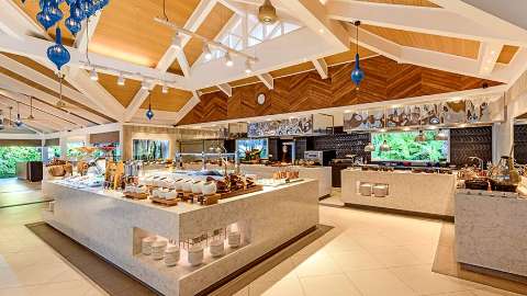 The resort features seven on-site restaurants, offering a range of international cuisine to satisfy every palate. Breakfast is served at Feast, under a Cajun thatch coconut roof, where chefs prepare made-to-order dishes at live cooking stations. Visit again in the evening for themed dinners and live entertainment. Lunch options include Kakuni Hut for Caribbean inspired food on the beach, Anchorage Bar for a light meal, ChopstiX for a late lunch with homemade dumplings and satisfying noodle bowls, or Masala Hut for classic dishes such as chicken tikka. With the exception of Kakuni Hut, each restaurant is also open for dinner. Families will also enjoy dinner at Masala Hut for a relaxed meal, shared among all family members. The oceanside Sea Salt restaurant and more formal Baan Thai are also open for dinner. Sea Salt is the perfect, alfresco setting for seafood – a $60 dining credit per person (food only) applies when dining in Baan Thai and Sea Salt. Be sure to try the Seafood Furanafushi, the restaurant’s classic seafood platter or for something special, Baan Thai is a must.