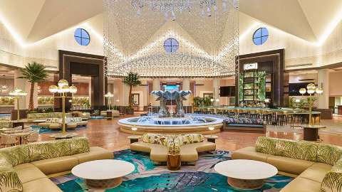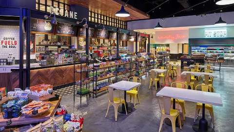 Unwind poolside at the Cabana Bar and Beach Club. Open for lunch and dinner, this spot is perfect for grabbing a light bite or refreshing frozen cocktail. The fountain serves up sweet treats and snacks – order soft-serve ice cream, milkshakes, hearty sandwiches and salads here. Start your day in the sun-filled Garden Grove with breakfast beneath a 25-foot oak tree. Paper lanterns and fairy lights twinkle in the branches above you as you tuck into easy-going morning dishes. At lunchtime, sandwiches and salads are the menu’s main attractions. Sitting poolside, both Splash Pool Bar and Tangerine serve up handcrafted refreshments and small plates. There’s also Java, perfect for a quick fuel-up, Chill, brimming with frozen delights, Fuel, stocking a range of grab-and-go snacks and sandwiches, and Grounds, serving up craft coffee. If you fancy a change of scene, Lagoon, the resort's game zone, is ideal for a chilled bite. This spot is great for snacking between rounds or settling in for something more.
