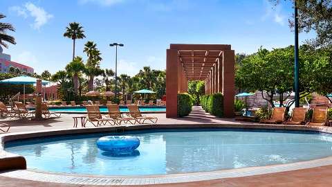 An Official Disney Partner Hotel – The high-rise Walt Disney World Dolphin is an ideal home base for a family adventure within the EPCOT Resort Area. The vibrant hotel places you a stone's throw from many attractions – and its higher floors offer stunning views of the park fireworks. You can keep the kids entertained at the Camp Dolphin kids’ club, arcade or mini-golf course. The hotel also offers a gym, spa and five pools, alongside a handful of restaurants.