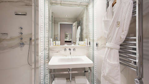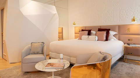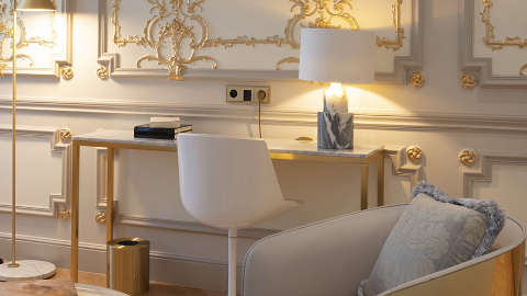The elegantly appointed rooms and suites are inspired by traditional Parisian design. They feature hardwood floors, high ceilings with gold accents, padded headboards and bespoke furnishings. Sumptuous marble bathrooms feature heated floors, luxury toiletries and large showers or bathtubs. Free Wi-Fi, minibars, espresso machines and a tea selection make your stay complete – and a pillow menu is provided for maximum comfort. An upgrade to the Eiffel Prestige Suite affords direct Eiffel Tower views from an adjoining balcony, while the opulent and spacious Bowmann Suites come with a panoramic terrace which overlooks the city.