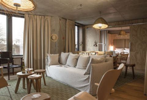 Saint Ouen, long famous for its huge flea market, is now a highly desirable greater Parisian district, and Mob House fits right in. A 100 per cent French playlist sounds across common areas, with tracks democratically selected by staff members. There are more than 5,000 books in the hotel, including in the guest rooms, which offer an all-natural palette of sand-coloured throws and drapes, flashes of cool marble, rustic straw lampshades with trailing cords casually clipped to the side, and bare wood wall panels, with the studs exposed, bien sûr. Larger rooms take a multi-purpose approach: section off a sleeping area or dressing room and turn your endlessly stylish space into something else. From certain vantage points, you can spy the white dome of the Sacré Coeur, a reminder of how close you are to the heart of the historic tourist-trodden streets of the inner city, while discovering something fresh and exciting on the edge.