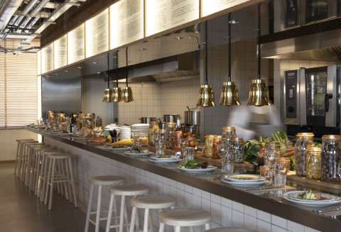 Star Parisian chef Jérôme Banctel designed the eco-conscious menu for the Feuille de Chou brasserie. There’s room for 150 inside this industrial dining room with a bohemian twist – note the exposed piping overhead and the little busts and trinkets under polished glass cloches. Outside on the bulb-strung patio, there’s seating for 80 more diners to enjoy the flavourful organic French food with healthy intentions. Vegetables are the stars of the show here, with extra love for the once-lowly cabbage, but you’ll find a few chicken, seafood and fish flavours here and there. The Ficelé‘Feuille de chou’, a concoction of seasonal veg roasted, rolled and infused to perfection, is a must.