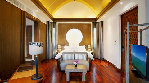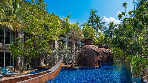 The resort is tucked away in an emerald-green landscape, where nature takes centre stage. Surrounded by an array of coconut palm trees, it provides plenty of tranquil nature views. Visit the nearby Khao Sak National Park, 35 miles away, or stretch out on the resort’s enviable beachfront and admire the subtle white sands intermingling with the Andaman Sea’s bright blue waters. The vibrant town of Phuket, filled with Sino-Portuguese architecture and tantalising food markets, is 78 miles away, while Phuket International Airport is 58 miles from the property.