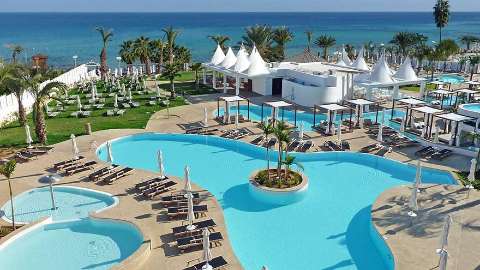 The hotel is situated in the popular resort of Protaras, overlooking Sunrise Beach which enjoys Blue Flag status – ideal for families. Notable spots in the area also include Profitis Ilias, a picturesque church sitting on an imposing natural rock formation, just over one and a half miles away. There is also a local bus service, that passes in front of the hotel, if you plan on visiting Ayia Napa, where you can visit the Sculpture Park and Thalassa Museum, the journey takes approx. 20 minutes. The closest airport is Larnaca International Airport, 41 miles from the hotel.