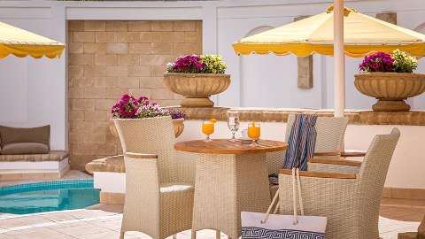 The main restaurant provides all-day Greek and international cuisine, featuring an American breakfast buffet, wood-fired pizzas and unique theme nights. During the day, enjoy refreshments and snacks from the pool bar. In addition to serving local spirits, alcoholic and non-alcoholic drinks, the main bar also offers a healthy corner with herbal teas.