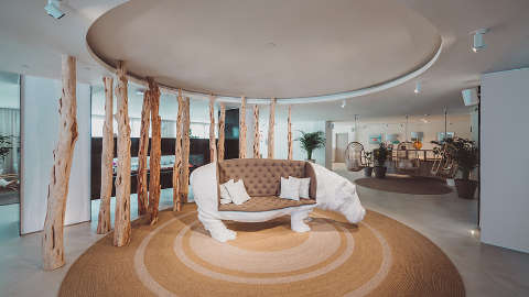 Comprised of a nine-floor main building and an annexe block joined by large gardens and terraces, the adult-recommended Amare Beach Hotel Ibiza offers crisp, modern decor, three pools and a rooftop bar.