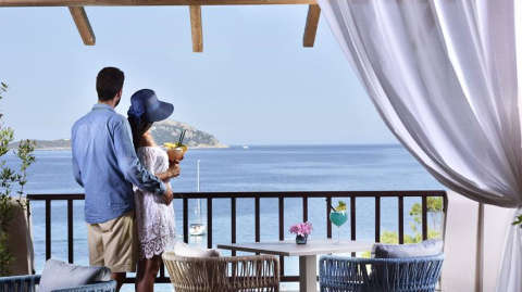Classic Rooms are decorated in a traditional rustic style and can be found in the Colonna Village area. They all feature balconies overlooking the surrounding Mediterranean gardens. You will also find the family rooms located here too. Superior rooms have a dedicated reception area and are situated in the beach area. This privileged coastal setting extends through to the décor, with blue and white furnishings inspired by the azure waters nearby. You can also book a Superior room with guaranteed sea views.
