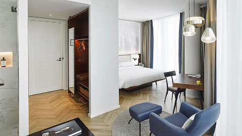 Andaz Vienna, the luxury-lifestyle brand of Hyatt, is located in the new Quartier Belvedere and offers 303 urban rooms and suites, ranging from 30 to 194 sqm, connected by interlocking bridges and sharing a spacious lobby on the ground floor. The 2,200 sqm meeting and events area, including a 705 sqm ballroom, provides the perfect space for innovative meetings or events. A breathtaking rooftop bar, located on the 16th floor, will delight guests with its beautiful view overlooking Vienna.