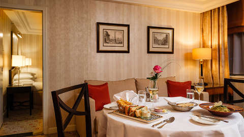 Retreat to Intermezzo Bar in the evening, where a mahogany bar is crowned by a glittering chandelier. Sit back with a glass of Szigeti rose in hand or sip on the bar’s signature champagne cocktail. Well-known cocktails, like cosmopolitans, are also ready to tempt you, along with cheeseboards and plates of beef tartare. For the ultimate nightcap, finish your day with a whisky from the bar’s expansive collection.
