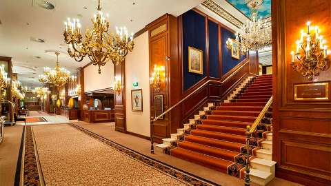 While the hotel is set in a modern multi-storey building, the interiors ooze Viennese charm. Mahogany walls and furniture adorn the lobby, along with gold chandeliers and burgundy carpets. The rooms also feature an art deco aesthetic with red floral carpets, champagne-coloured walls and vintage pictures of palaces. All rooms provide contemporary comforts, like a coffee maker and toiletries. For access to the 12th floor lounge and its panoramic view over Vienna, choose the Classic room.