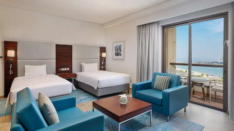 Connected to sister property, Hilton Dubai Jumeirah, via a footbridge, you’ll have easy access to the hotel's spa, fitness club and Marina Beach. This is also where you'll find the Kidz Paradise club, offering games and activities for children aged 4 to 12, as well as a children’s pool and a games room, with video games for children aged 13 and up.