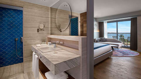 The chic, spacious accommodation are perfect for a relaxing getaway. Each beautifully designed room provides a private balcony. When you stay on the All Inclusive package, you will receive a complimentary bottle of water and enjoy a free minibar. Upgrade to a swim-up room for direct access to a shared pool, perfect for cooling off on a hot day. Or try the Family Rooms or Penthouse Suite for more space and extra facilities including a Nespresso machine, sun loungers and a Jacuzzi.