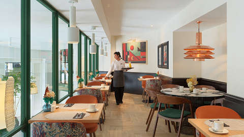 At Mediterrani, you’ll find buffet breakfasts in a cafeteria-style setting. For snacks, including tapas, and cocktails featuring a range of premium gin and tonics, head to Ona Lounge – a minimalist bar with street views and plenty of zingy lime green accents. On the eighth floor by the plunge pool, Sky Bar serves city views with a selection of cocktails in the summer months.