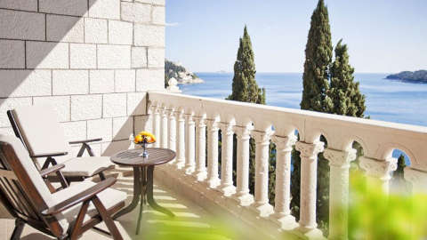 Right on the Adriatic, surrounded by ruins, pine forest and terraced gardens, two former villas make up this beautiful hotel. One is modern, the other is a refurbished listed property. The hotel is just a ten-minute walk down the hill to the historic centre of Dubrovnik. A public beach is a short stroll away.