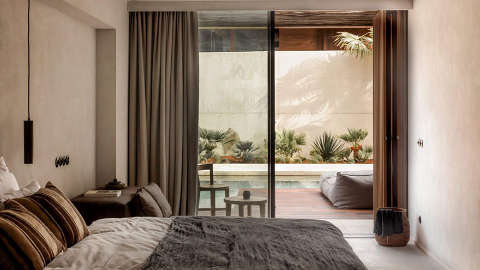 The 189 bohemian-styled rooms are decorated in warm earthy tones and feature natural materials like rattan, hessian, oak wood and stone. Large glass doors fill the rooms with natural light and open onto a private balcony. You can book a swim-up pool room to enjoy a private terrace with direct access to a secluded pool (shared with five neighbouring swim-up rooms). There are also spacious Junior Suites with a comfortable lounge space, and an upgraded bathroom with a rainfall shower and separate stone bathtub.