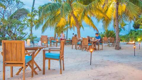 Accommodation is spacious and many villas have semi open-air bathrooms, making the most of the warm weather. Choose a villa depending on your preferred setting - be it hidden in the gardens, metres away from the beach, or suspended over the Indian Ocean on stilts. Each villa is decorated with light walls, contrasted with wooden vaulted ceilings and brightly coloured furnishings.