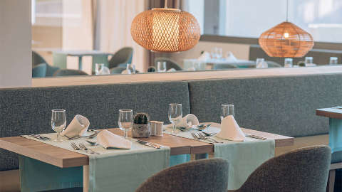 The hotel offers two restaurants, the Buffet Restaurant serves local and international dishes while Agave Restaurant serves a Mexican menu. Both feature show cooking stations and Agave Restaurant boasts views of Cala Domingos beach. Please note that Agave Restaurant is open in July and August only and requires reservation.