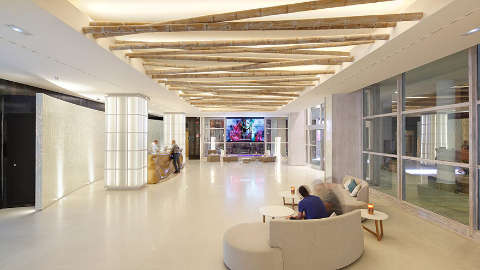 Hotel decor is fresh, minimalist and fun – think lots of white walls with neon lights and bold artwork, plus a mirrored elephant sculpture. Although plenty of light and plenty of white are unifying features, each room is designed differently. Oh La La Front Sea View rooms add a pop of pale blue to reference the views, and beds have a mashrabiya screen-style headboard which extends to the ceiling. Keep The Secret rooms are almost completely white but feel inviting with clever recessed lighting behind and on either side of the bed, as well as behind the TV. I Was Here rooms have darker wood flooring and beachfront murals behind the beds, with letters in the sand spelling out the name of the room. Molton Brown toiletries and Nespresso machines feature in all.