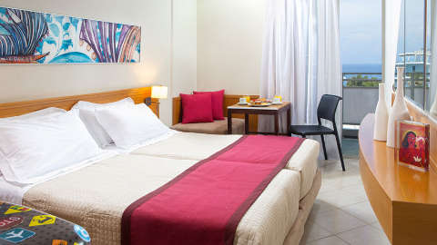 On the north-eastern tip of the island, the hotel is less than 200 metres from Elli beach and the Modern Greek Art Museum. Mandraki Port and the UNESCO protected Medieval City – with the Palace of the Grand Master of the Knights of Rhodes – are under a mile away. Rhodes International Airport is 11 miles away.