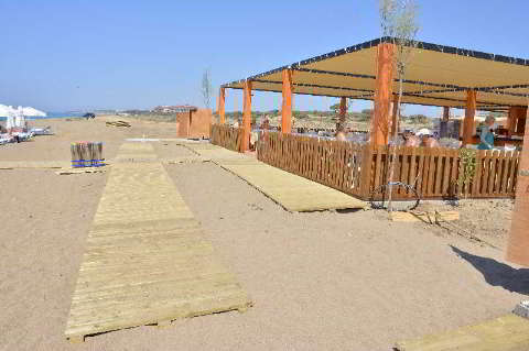 This impressive resort enjoys a privileged location in Titreyengol, situated 70 km from Antalya Airport and only 7 kilometres from Side archaeological site. This opulent property is located just a few steps from a seemingly endless sandy beach bathed in crystalline waters of the Mediterranean Sea. Surrounded by lush and verdant scenery, this establishment boasts a fabulous architectural style, luxurious décor and excellent services. The luminous guest rooms offer space and luxury to each individual guest. Elegant furnishings and soothing tones and deep-purple toned fabrics induce a sense of royalty. Each unit is fitted with individually air conditioner, shower, hair dryer, LCD TV, balcony, complimentary mini bar with water and various juices. After a busy day of sightseeing, travellers may relax with a refreshing swim in the hotel pool, play tennis or indulge in hammam while the youngest ones may let off steam at the paddling pool with slides and children playground.