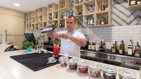Donaire delivers indulgence with Michelin-starred dining in a refined atmosphere. The signature cuisine here has been awarded a SOL Repsol and captures the essence of the Canarian gastronomy. Over at the Amaina Bar and Restaurant, you'll find a varied menu for all ages and tastes, too. This spot is perfectly located in the family pool area, spilling out onto a large terrace where you can grab a seat for breezy midday bites. The Zambra Sky Bar is your go-to for sunset sips on the hotel's adult-only rooftop, while Bar Zumeria Narin keeps things cool poolside. The Bar Lobby Los Naranjos is perfect for a quick sip on your way in or out, with live lilting piano music and fabulous cocktails to match. Chilled drinks and snacks ready when you are, with all bars in the pool areas offering a handy waiter service, straight to your sun lounger.