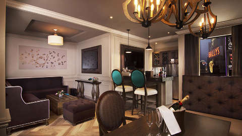 The Cromwell tiene el típico ambiente de juego de Las Vegas, íntimo pero animado. Las 370 máquinas tragaperras y las 28 mesas de juego proporcionan a los huéspedes una experiencia de juegos exclusiva pero en un espacio más pequeño. Esto lo convierte en un ejemplo perfecto de cómo sentirse en un hotel boutique. El Casino Lounge es el lugar ideal para observar a la gente, socializar o tomar un descanso de la apasionante sensación que producen los espacios de juegos de Las Vegas. Un lado está lleno de televisores y zonas de juegos digitales, y el otro es literalmente un salón.