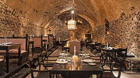 Head to the Pergola Pool Restaurant for a American a la carte breakfast is served daily. This stunning spot offers striking views to the village and surrounding vineyards. Trataro delivers a dramatic al fresco dining experience poolside. This Italian eatery celebrates Santorini's venetian history through its distinct Mediterranean flavour palate. Seats here also offer unobstructed views of the resort's surrounding vineyards – it's the perfect spot for a leisurely lunch. Alati has evolved from a 400-year-old winery cave to showcase the creative fish and seafood-inspired menu. Plus, the private dining options mean that with an advance booking, you can savour five or seven-course degustation menus that highlight the myriad flavours of Santorini.