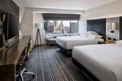Le ampie camere offrono una splendida vista sulla città. Dispongono di letti Hyatt Grand BedTM, iHome stereo con stazione iPod e di un lussuoso bagno con prodotti Portico, vasca e asciugacapelli. Sono inoltre dotate di telefono con linea diretta, TV via satellite/cavo, radio, accesso a Internet, cassetta di sicurezza, set per la preparazione di tè e caffè, aria condizionata e riscaldamento.